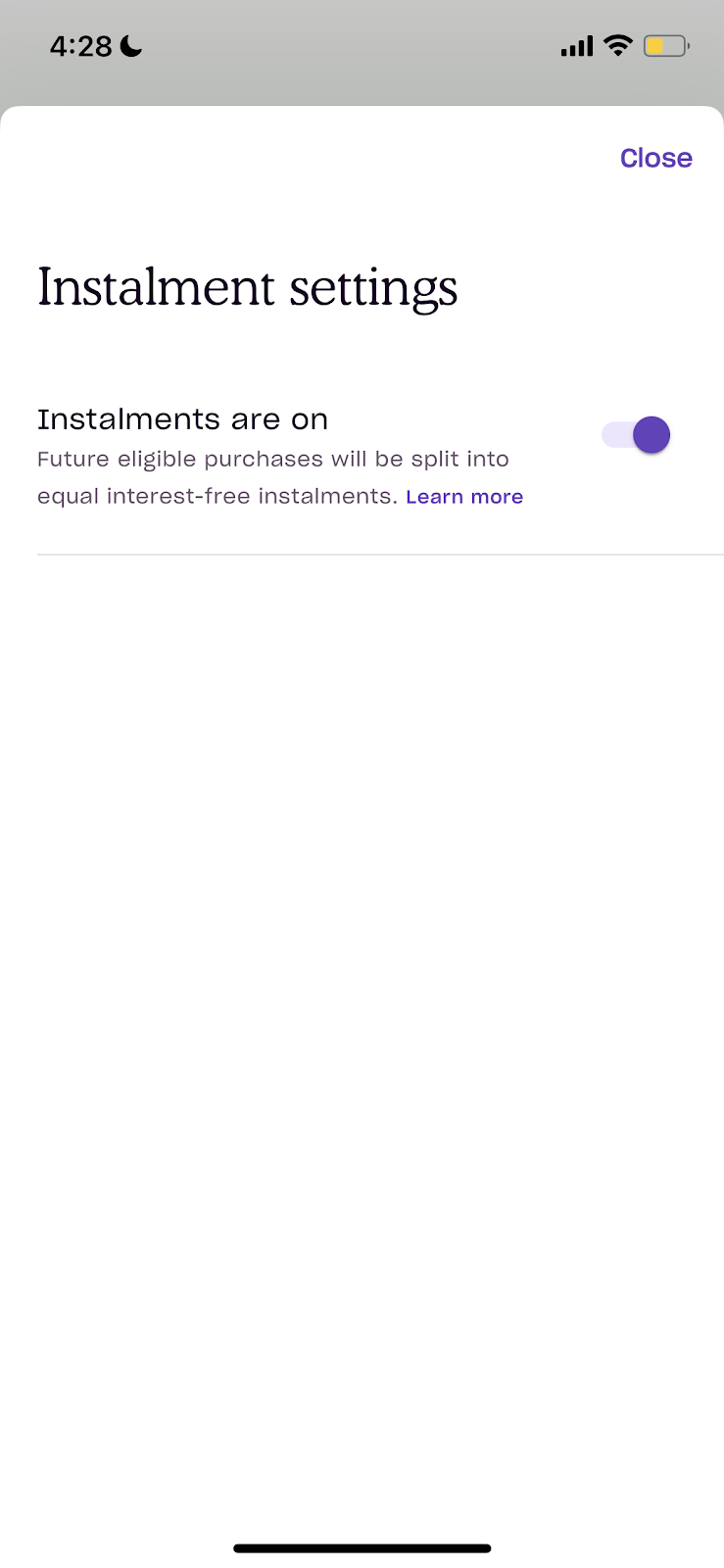 If you opt out of instalments you are not able to opt back in. Also keep in mind, if the purchase isn’t fully repaid by the end of the interest-free period, interest will apply at 25.9% p.a. on the remaining balance.